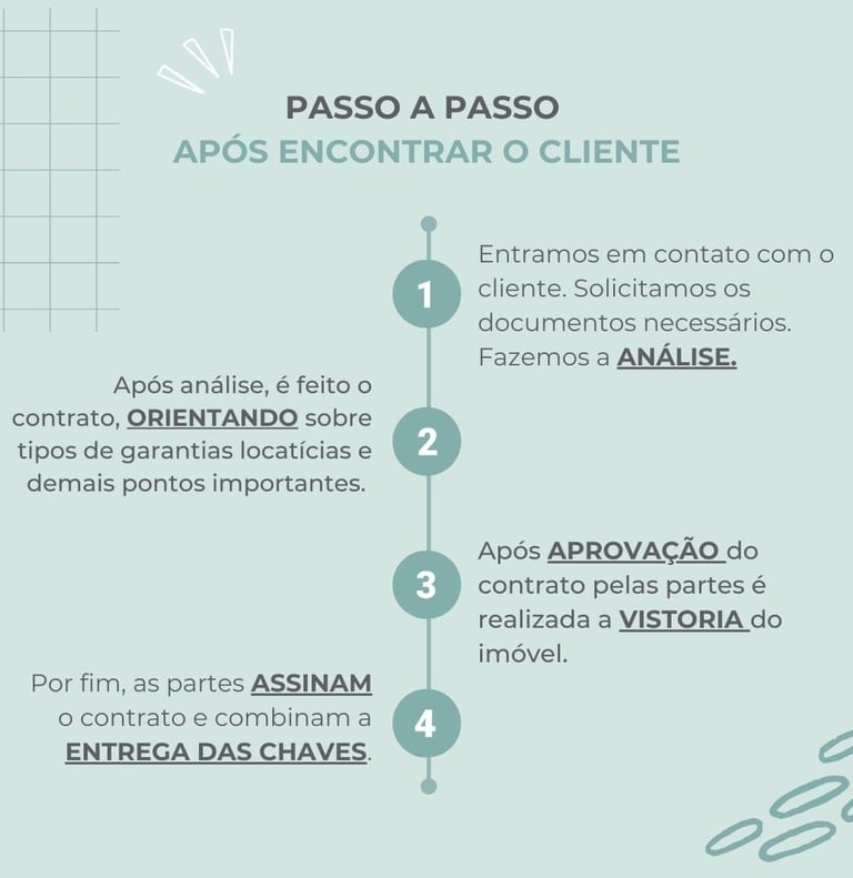 Faremos a análise financeira e judicial do possível Inquilino, verificando se atende o perfil ideal para efetivar o negócio.